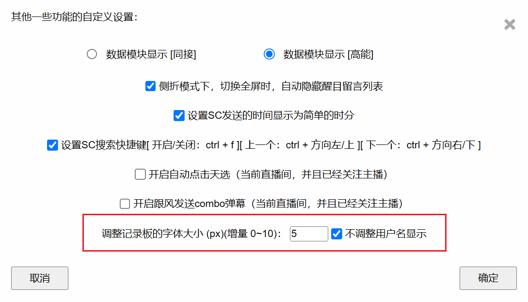 影响的范围是:记录板的SC内容和用户名、特殊高亮弹幕